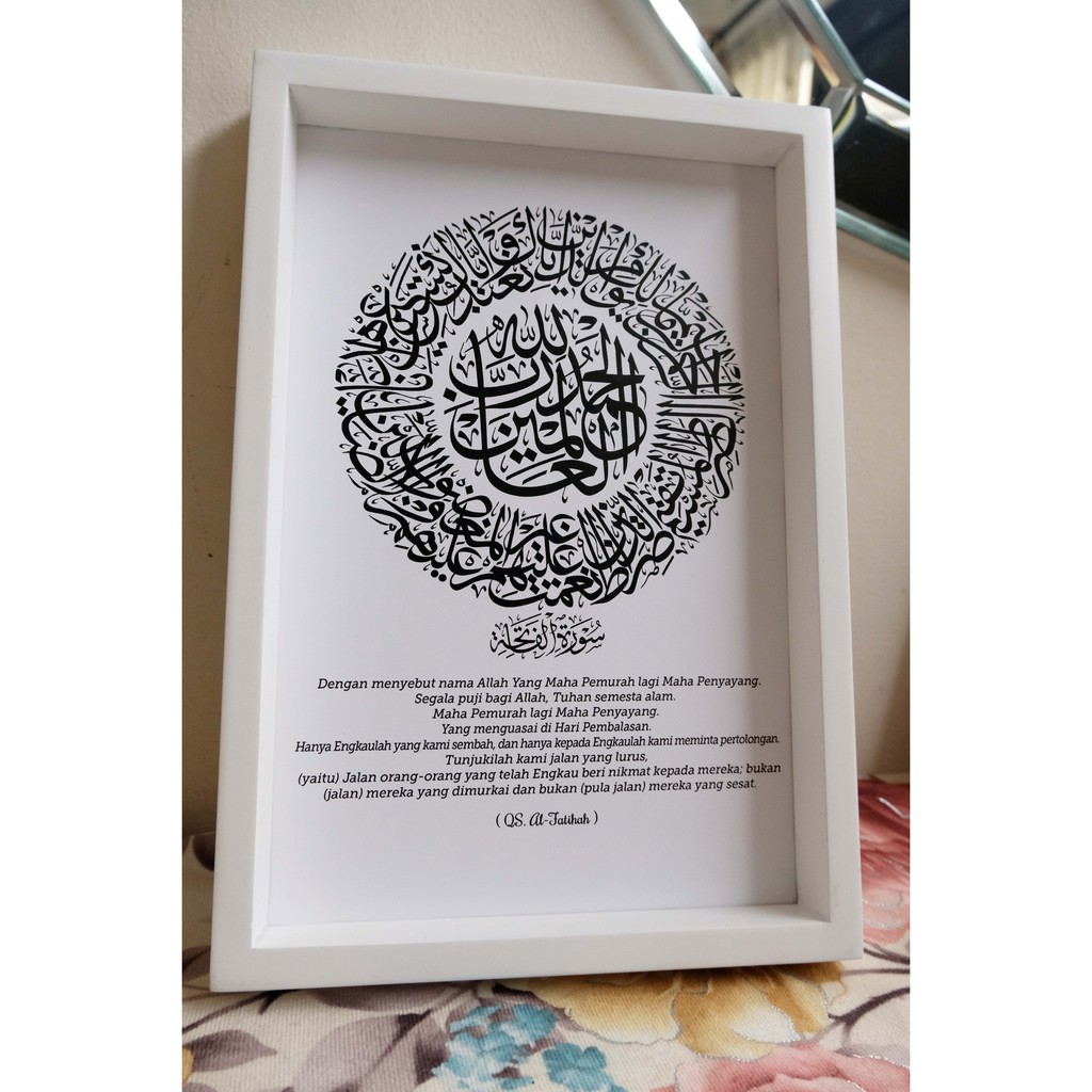 Hiasan Dinding Wooden Poster Kaligrafi Surat Al Fatihah Hitam Putih.