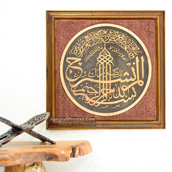 Kaligrafi Ukir Kayu Surat Al Insyirah.