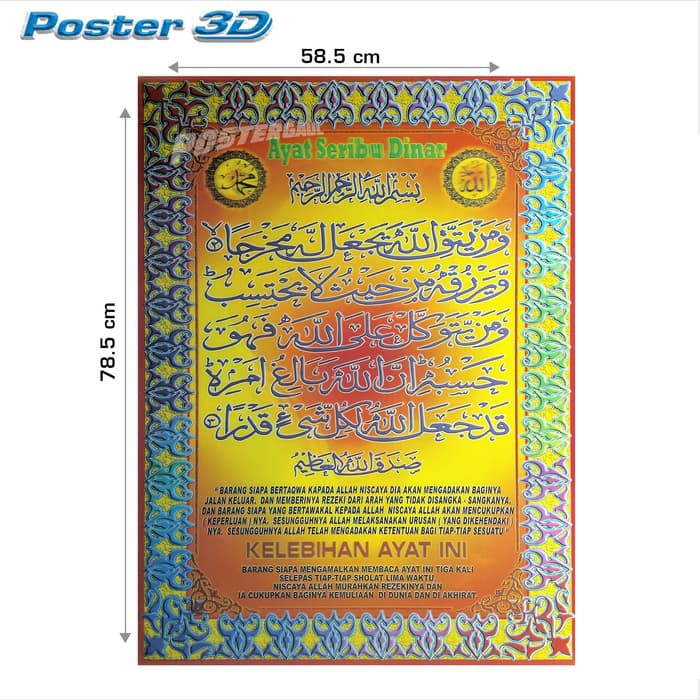 Poster 3d Jumbo Kaligrafi Islam Ayat 1000 Dinar 3dj 13 78 5x58 5cm Hiasan Rumah Minimalis Hiasan.