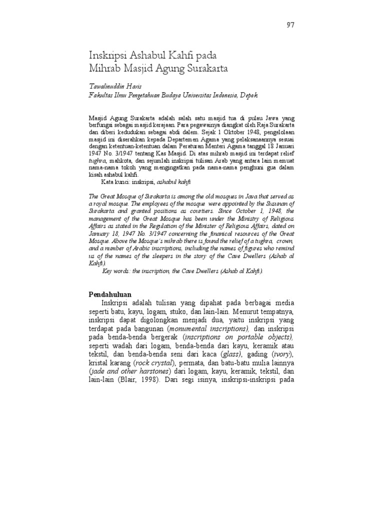 Inskripsi Ashabul Kahfi Pada Mihrab Masjid Agung Surakarta.